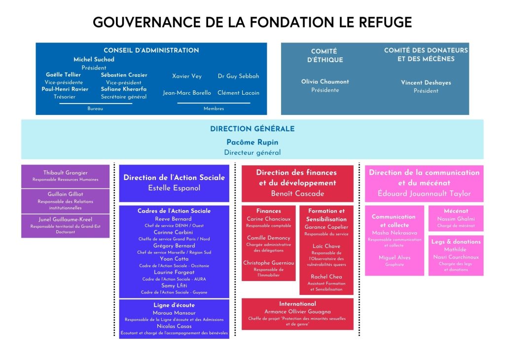 • le comité d’éthique, présidé par Olivia Chaumont, qui peut être contacté à l’adresse comiteethique@le-refuge.org ;